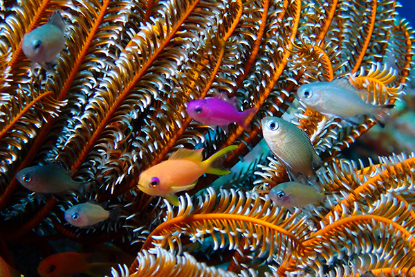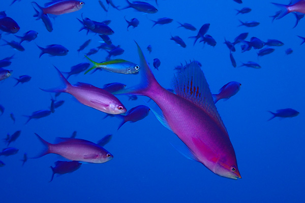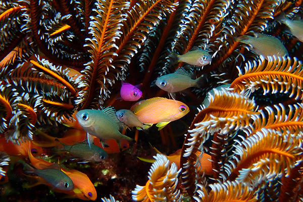 ハナゴイ、キンギョハナダイ、アカククリ、ネムリブカ、ニセカンランハギ、クマノミ、ホシナシイソギンチャクエビ、ガラスハゼ